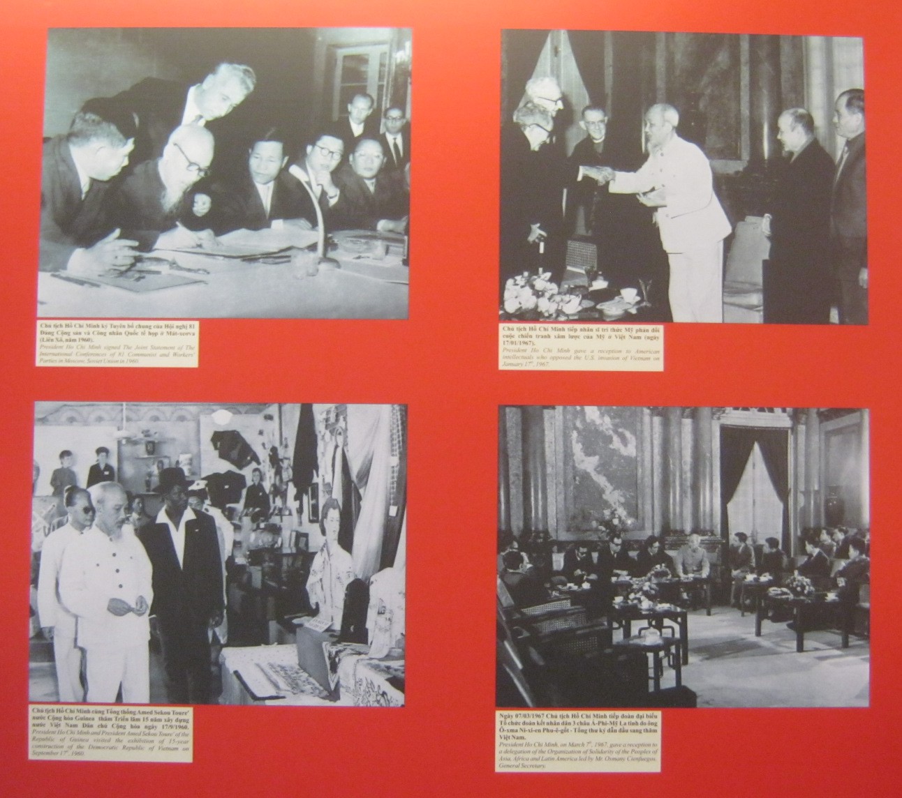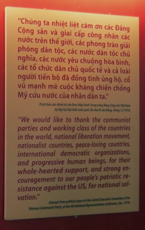 Wir alle die Leute des vietnamesischen Volkes sind dazu bestimmt, diese aggressiven "US"-Imperialisten zu stoppen, für die Unabhängigkeit, Freiheit und die Vereinigung unseres Mutterlandes, für unser Ziel, friedlich mit anderen Nationen in der Welt zu leben, auch mit den "USA". Wir werden von Freunden in aller Welt unterstützt. Unser Sieg ist gewiss, und der eure auch.