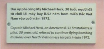 Text: "Michael Heck war 30 Jahre alt, ein Flugkapitän eines B52-Bombers, einer "fliegenden Festung", als er 1972 weitere Flüge für Bombenmissionen über nordvietnamesischen Zielen verweigerte."