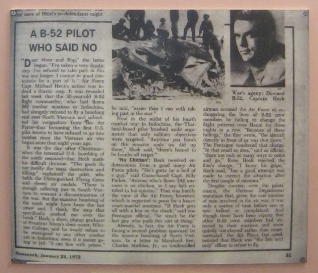 Der Bericht von Newsweek vom 22. Januar 1973 über den Flugkapitän Heck, der seit 1972 Flüge mit B52-Bombern verweigerte