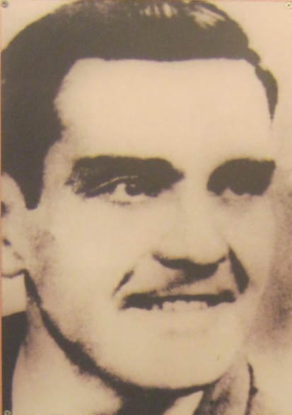 Text: Das Portrait von Norman R. Morrison. Der "Amerikaner" verbrannte sich vor dem Pentagon selbst (2. Nov.1965), aus Protest gegen den aggressiven "US"-Krieg in Vietnam.