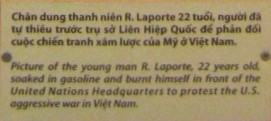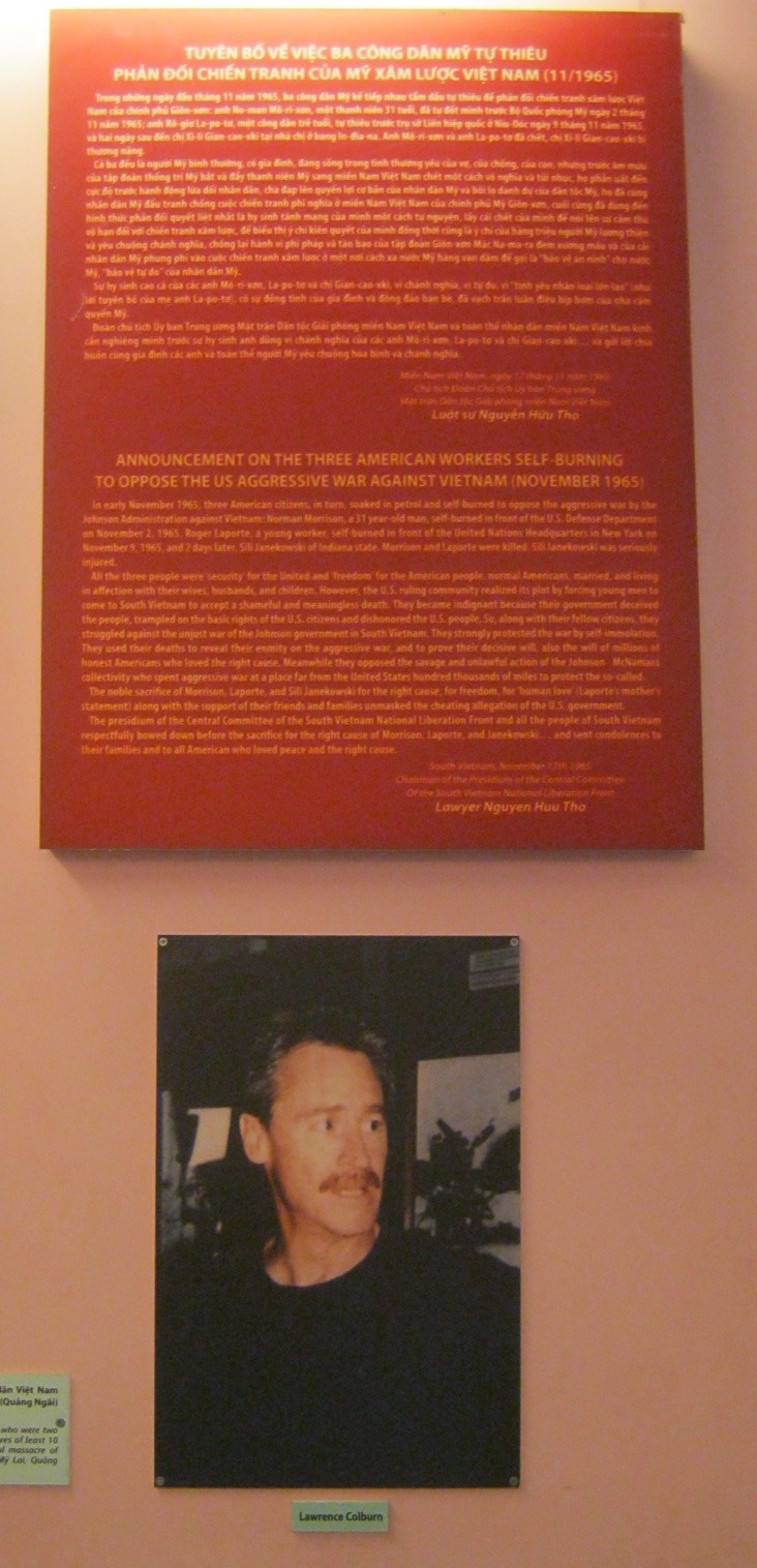 "Anfang November 1965 haben sich nacheinander 3 "amerikanische" Bürger mit Benzin übergossen und sich selbst verbrannt, um gegen den aggressiven Krieg der Johnson-Regierung gegen Vietnam zu protestieren: Norman Morrison, männlich, 31 Jahre alt, vollzog seine Selbstverbrennung vor dem "US"-Verteidigungsministerium am 2. November 1965; Roger Laporte, ein junger Arbeiter, vollzog die Selbstverbrennung vor dem Hauptquartier der Vereinten Nationen (UNO) in New York am 9. November 1965; und zwei Tage später war es Sili Janekowski vom Bundesstaat Indiana. Morrison und Laporte starben bei der Aktion. Sili Janekowski wurde schwer verletzt.