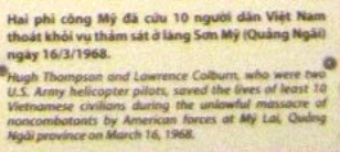 Text: Hug Thompson und Lawrence Colburn waren zwei "US"-Armee-Helikopterpiloten, die auch mindestens 10 vietnamesischen Zivilisten das Leben retteten. Es geschah während des unseeligen Massakers an unbewaffneten, nichtkämpfenden Zivilisten durch "amerikanische" Truppen in Mỹ Lai, Provinz Quảng Ngãi, am 16. März 1968.