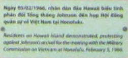 Menschen auf den Hawaii-Inseln demonstrierten protestierend gegen die Ankunft von ["US"-Präsident] Johnson, der hier ein militärisches Treffen mit der Vietnam-Militärkommission abhielt - 5. Februar 1966