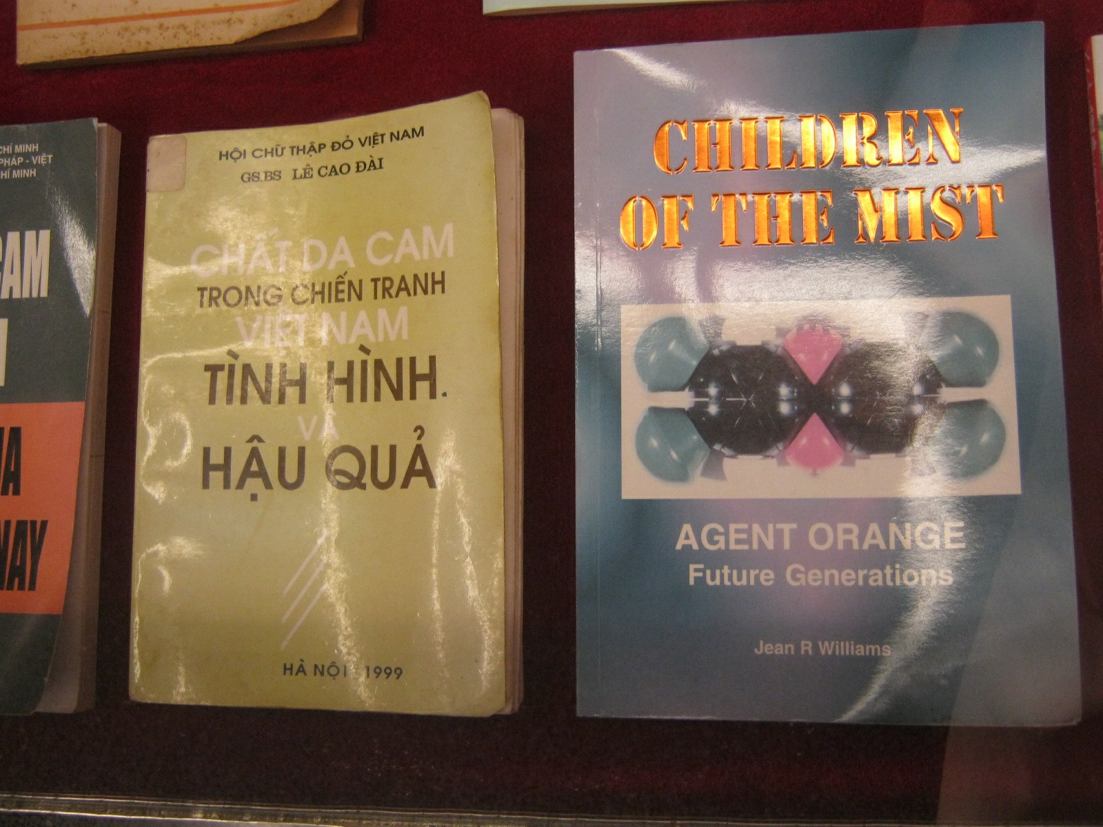 Vitrina de libros: colección de libros sobre la Guerra de Vietnam y Agente Naranja