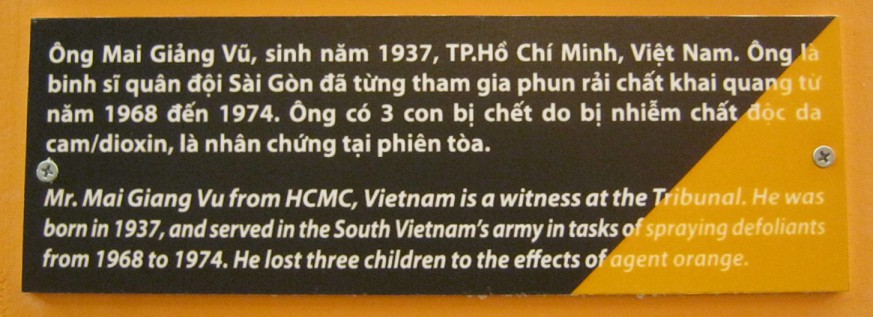 El Sr. Mai Gian Vu de Saigón (Ciudad Ho Chi Minh, HCMC) fue testigo en el Tribunal Popular Internacional en apoyo a las víctimas vietnamitas de Agente Naranja, del 15 al 18 de mayo de 2009 en París