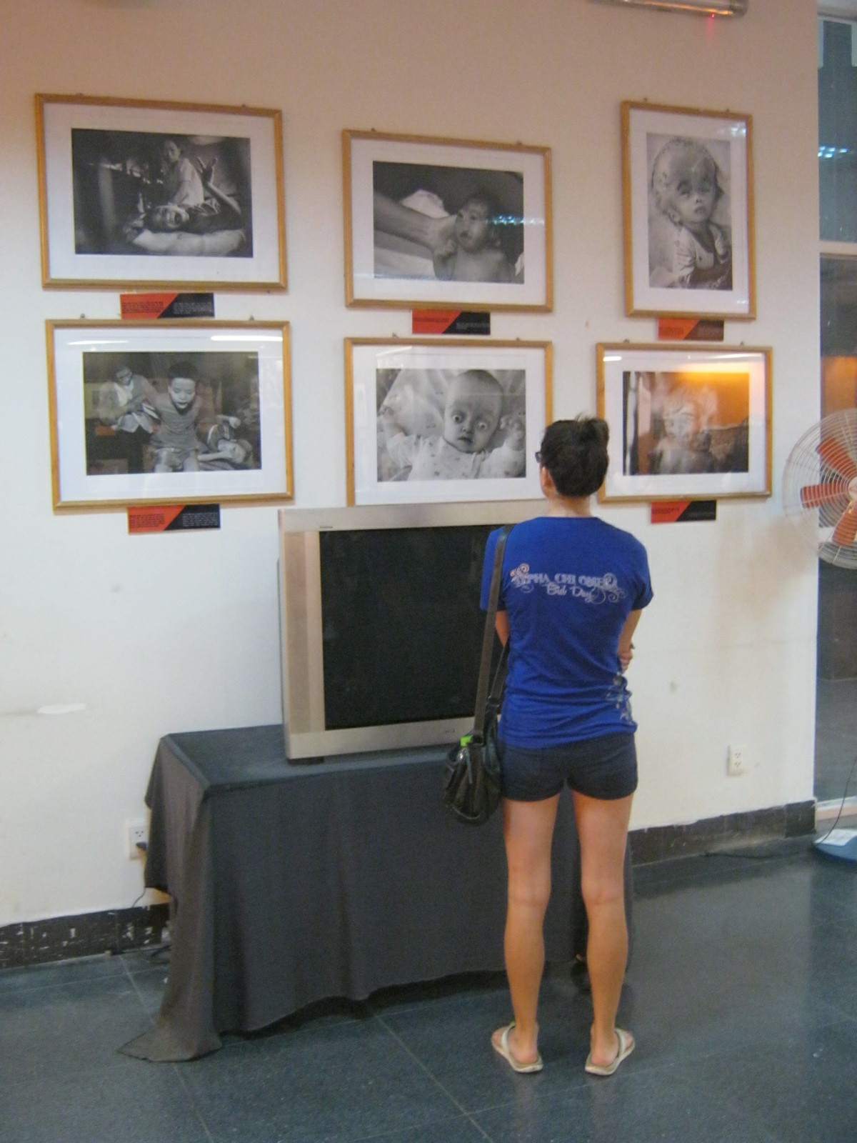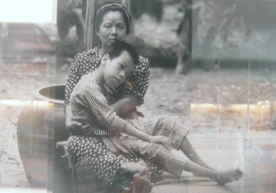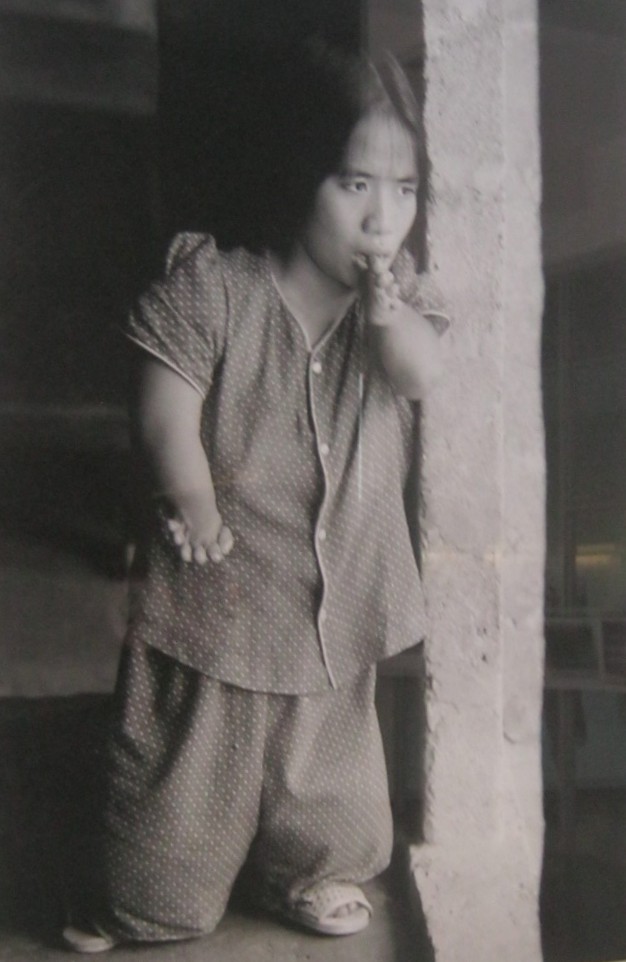 Víctima de Agente Naranja Tran Thi Hoan sin piernas y